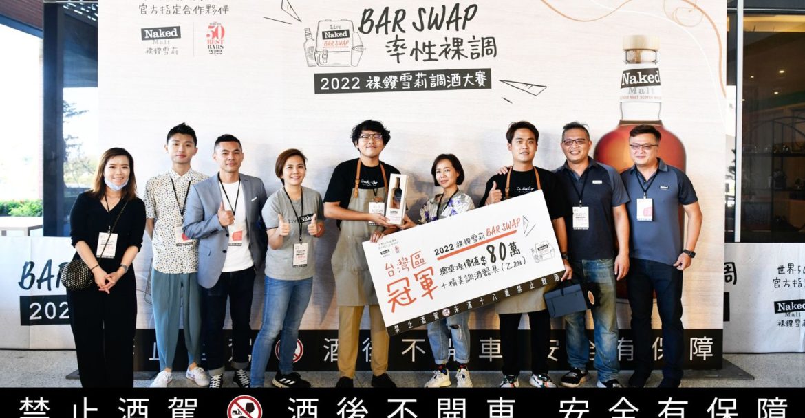 「2022 BAR SWAP」季軍由台南廟宇風酒吧Phowa拿下、亞軍殊榮則由位於高雄、隱身在現代畫廊裡的復古地下酒吧Gallery 20.5獲得,而台灣區冠軍則由位於一級古蹟赤崁樓對面的鐘錶主題小酒館Cuckoo Bar咕咕吧的陳言陵與蔡宇軒以「豐收之宴 The Naked Feast」獲得評審青睞獲獎,此杯冠軍調酒的發想概念為致敬返鄉務農青年們,正如裸鑽雪莉選用初次雪莉桶的精神,充分表達對台灣寶島,土地、經濟作物和偏鄉發展付出一己之力。
