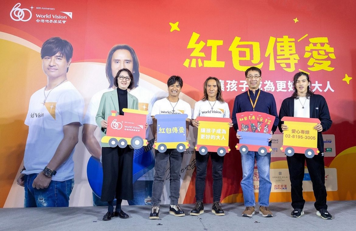 搖滾天團動力火車熱心公益,三度擔任台灣世界展望會資助行動的代言人,12日特別受邀出席「紅包傳愛─讓孩子成為更好的大人」啟動記者會,與台灣世界展望會李紹齡會長、展望會的百萬訂閱YouTuber吳奇軒共同啟動「傳愛列車」,呼籲大家可以透過滿載祝福與實質幫助的「助學紅包」、「健康紅包」、「平安紅包」與「希望紅包」,陪伴並幫助台灣各地的弱勢孩子與家庭打破貧窮的循環,不只穩定學習、健康長大、更讓他們有力量朝未來前進。