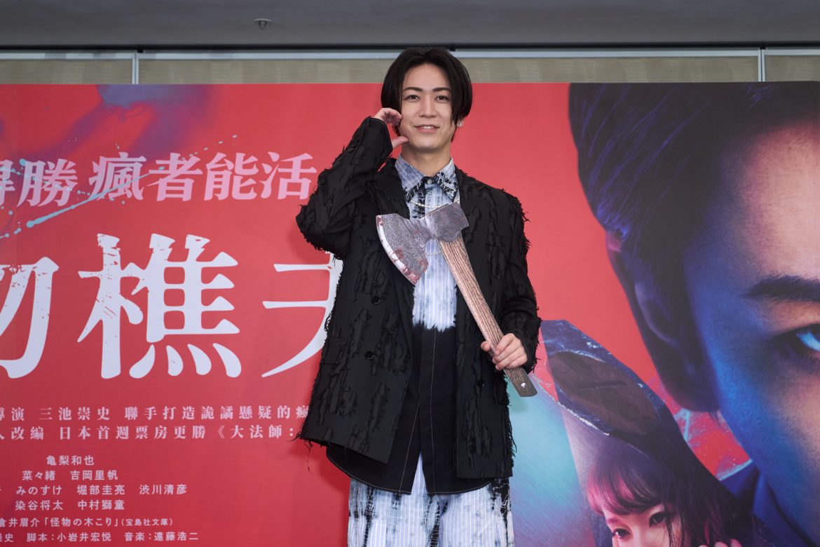 由網銀國際影視發行,並由日本恐怖名導三池崇史執導,龜梨和也、菜菜緒、吉岡里帆、染谷將太、中村獅童、澀川清彥等人主演的《怪物樵夫》,將於4/19正式在台上映!男主角龜梨和也於4/11抵台,展開一系列的宣傳行程。更吸引上百名粉絲接機,還有粉絲們自清晨五點便到機場守候,讓他直呼感動。龜梨和也表示「昨天一到機場就有非常多粉絲迎接,晚上見面會的觀眾們也都非常熱情,讓我覺得十分幸福,很感謝大家。」。