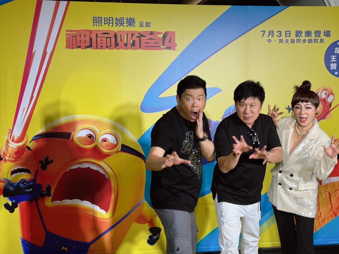 胡瓜、曾國城、王彩樺昨(30日)現身動畫全新篇章《神偷奶爸4》中文版首映會,3人各自替片中的角色配音,胡瓜14年來第5度配音片中角色「格魯」,被曾國城笑虧:「歐陽妮妮都配到要結婚了,瓜哥配到都結紮了!」胡瓜則笑回:「再配下去,彩樺的女兒都結婚了!」活動上,小小兵人偶現身cue王彩樺一起跳起最近流行的「燙燙糖葫蘆舞」,扭腰擺臀掀起高潮。現場3位主持人也分別與參加首映會的觀眾進行Q&A互動,曾國城笑虧瓜哥一秒把現場變廟會,引起哄堂大笑,3位合體卯足全力為將在7月3日上映的中英文版《神偷奶爸4》催人氣,同時也是首部登上Screen X影廳的動畫電影。胡瓜分享,自己配音的「格魯」一開始雖然是壞蛋,但心地善良,「這一集他有小孩了,最難是要唱歌」;再度為格魯太太「露西」獻聲的王彩樺也說,露西跟格魯在這集生下小寶寶,「沒想到第4集我懷了瓜哥的小孩」,笑言因為配音關係,連狗都取名叫露西,相當入戲。最後曾國城感性分享自己的配音角色反派「惡霸麥星」小時候都被格魯欺負,所以長大後想討公道,「只能說可恨之人必有可憐之處」自稱其實應該叫Mercy,意謂憐憫的意思。