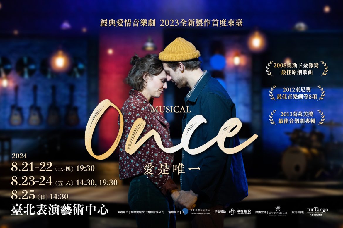 音樂劇《Once, 愛是唯一》由葛倫.韓薩、瑪琪達.艾葛洛瓦共同擔任詞曲創作,並由愛爾蘭劇作家恩達.沃許(Enda Walsh)擔任編劇。本次臺灣巡演是2023年首演的全新國際巡演版本,由北愛爾蘭導演狄恩.強生(Dean Johnson)執導,希望能帶來在台灣從未見過的 “演員即樂手” 的表演形式!12位音樂家演員輪番上場,一邊演奏吉他、小提琴、大提琴、手風琴、曼陀林琴和爵士鼓等樂器,同時又唱又跳又演,一邊搭配劇情發展,時而劇中人、時而場外客,展現比電影更加豐富飽滿的角色人物的內心世界,絕對將帶給觀眾一場震撼的四重感官享受。