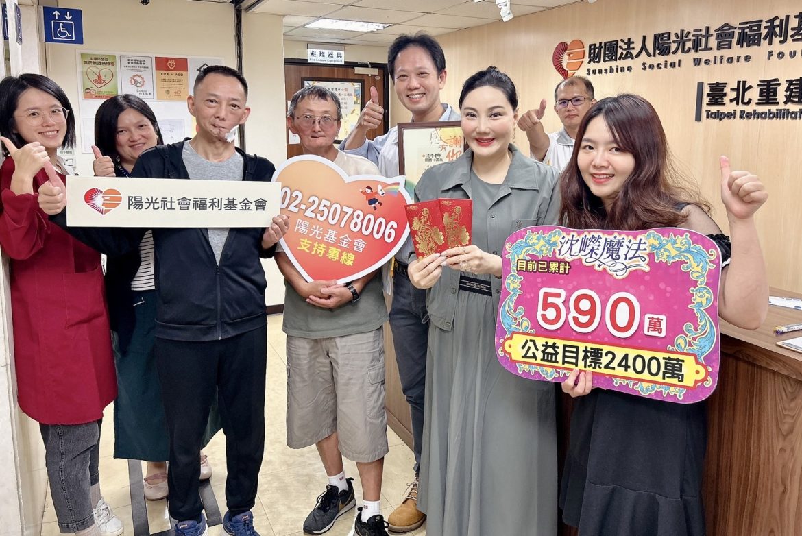 沈嶸認為比起打造虛偽人設,更重要的是成為真實的好人比較實在,因此早在4年前就發願「每月捐十萬,持續二十年」,至今已累計捐款達590萬元,持續朝總目標「2400萬元(回饋台灣二十年)」邁進。本月沈嶸捐贈10萬元給「陽光社會福利基金會」,資助「口腔癌生心理服務募款專案」,為口腔癌病友提供生理復健與心理重建,以及營養品、經濟補助、家庭支持等服務,沈嶸同時加碼贈送「魔法竹摺扇100把」「魔法羊乳皂100個」「沈嶸老師著作60本」,總物資捐贈累計21450份,期望將公益行動散佈在台灣的各個角落。