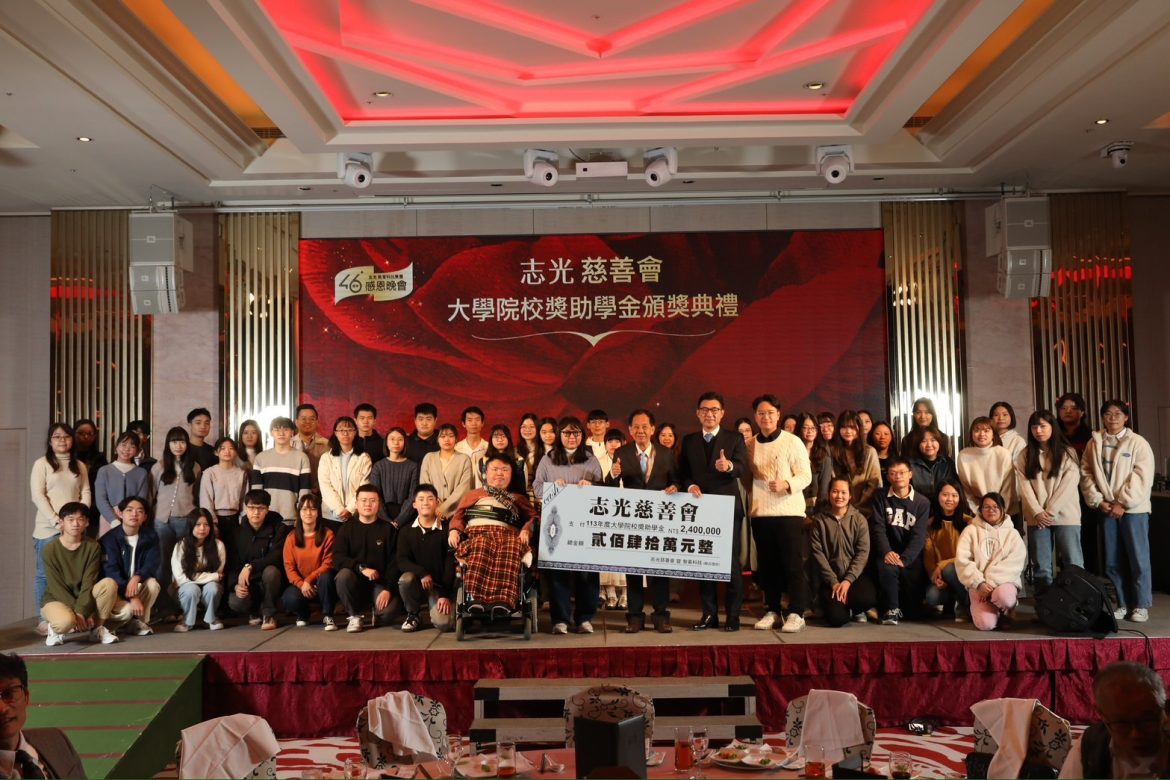 志光教育科技集團邁向第46週年,訂於12月19日晚上6點於台中長榮桂冠酒店舉辦46週年感恩晚會,晚會除邀請政商、學術界嘉賓蒞臨外,會中集團總裁林進榮更親自頒發240萬元大學院校獎助學金支票,獎助成績優秀及家境清寒之莘莘學子。