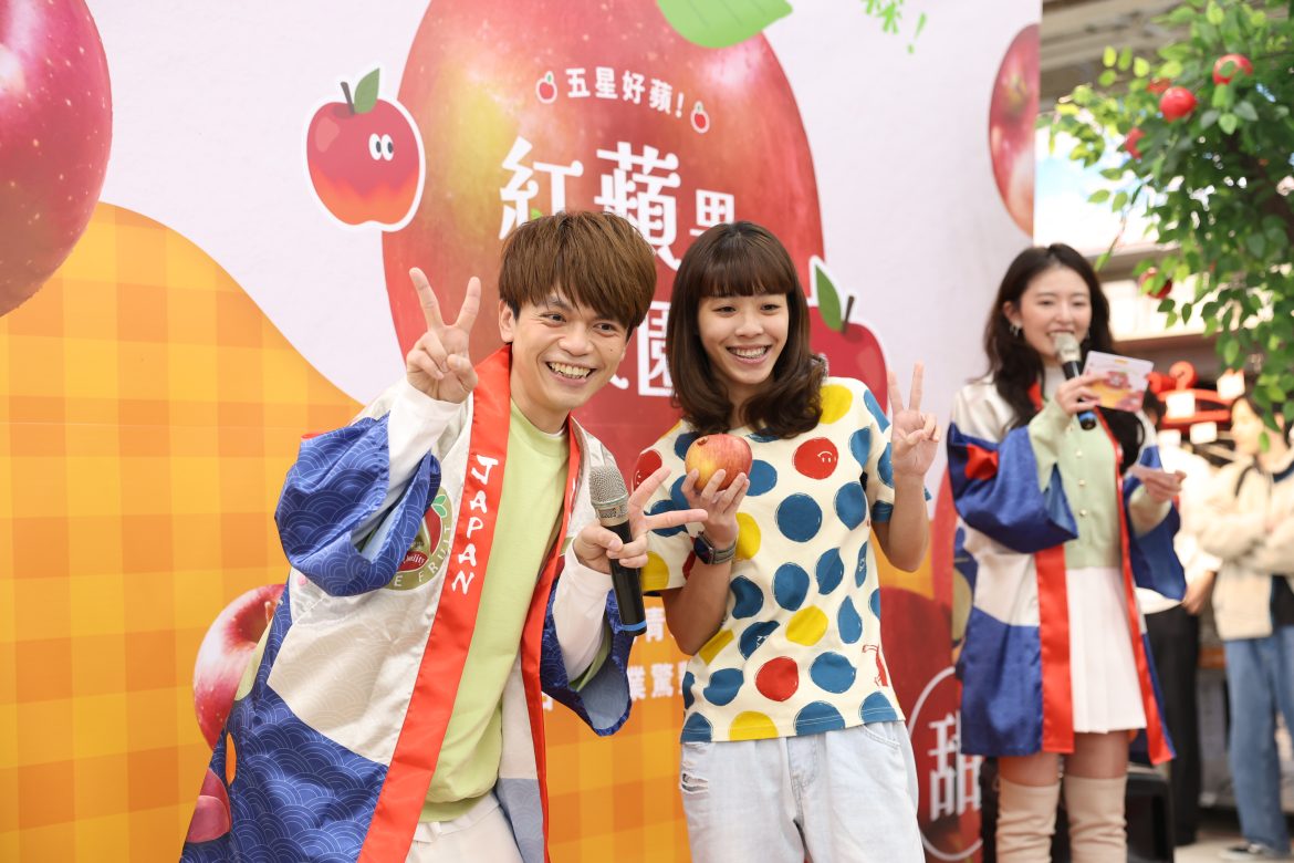 蔡阿嘎賣力宣傳豐葉蘋果美味。(圖/株式会社日本農業提供)