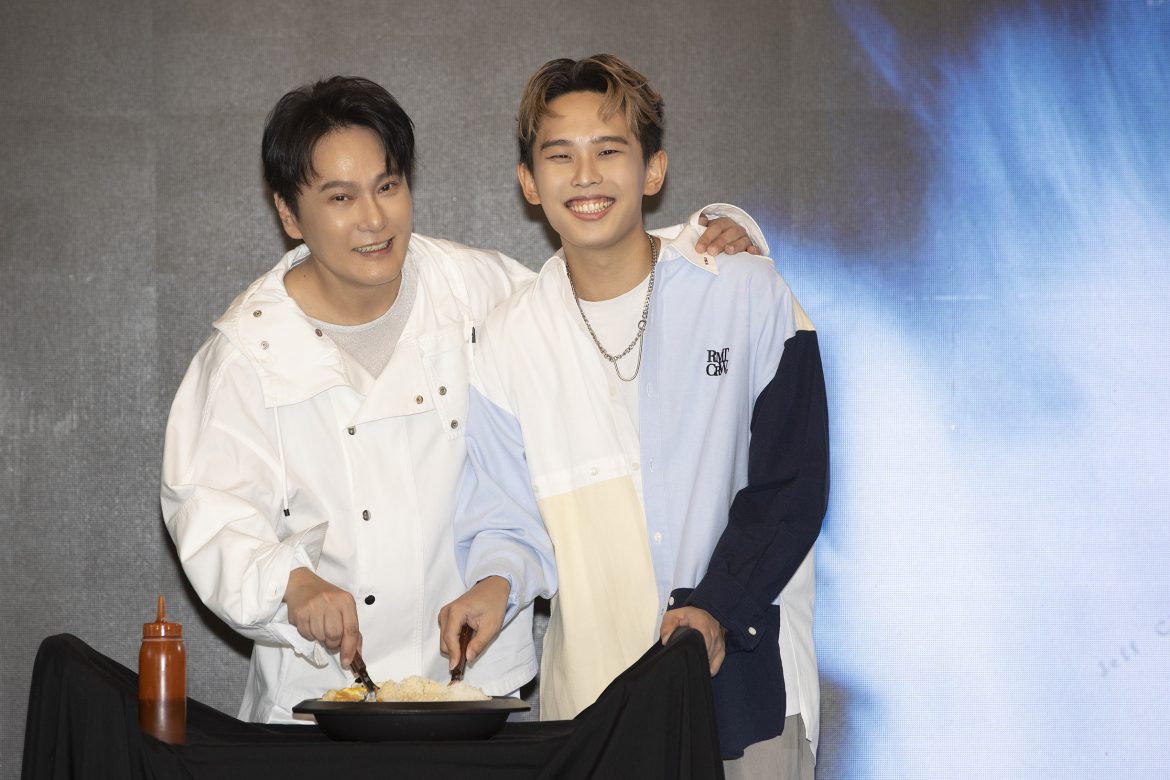 跨世代驚喜也在分享會上上演,理想混蛋雞丁現身站台,兩人合力打造的〈共犯〉成為話題焦點,雙王者首度合體,已擦出彗星火花,但雞丁更幽默端出伴手禮「石鍋拌飯」,笑說「想跟阿哲哥一起『共飯』」,可愛的諧音梗,更讓全場Surprise連連,甚至兩個大男生還現場又拌又炒起來,一時歡樂無比!主持人也順勢恭喜理想混蛋11月開箱小巨蛋,就1+1開紅盤,張信哲更承諾即使人不在台灣也會用行動力挺理想混蛋,雙方亦不排除未來合體驚喜,讓粉絲敲碗期待。