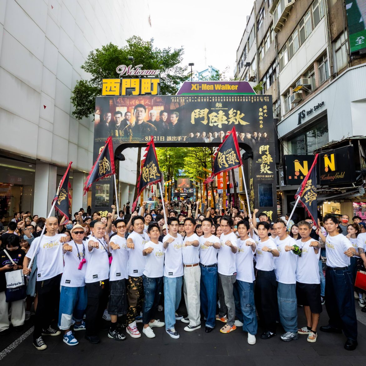 暑假最強國片《角頭-鬥陣欸》即將於8月21日全台上映,電影宣傳列車今(19日)正式開跑,首度大陣仗掃街拜票就在台北西門町掀起熱潮!由「五虎將」鄭人碩、黃尚禾、張再興、唐振剛、吳震亞與生力軍黃冠智領軍,搭配「新勢力六大男神」黃騰浩、張懷秋、黃鐙輝、吳念軒、阿Ben白吉勝、嘎嘎潘俊佳,以及北城搞笑雙寶陳萬號、大愷吳長愷,氣勢如巨星紅毯,吸引大量粉絲追隨,街頭尖叫聲不斷,將西門町擠得水洩不通。