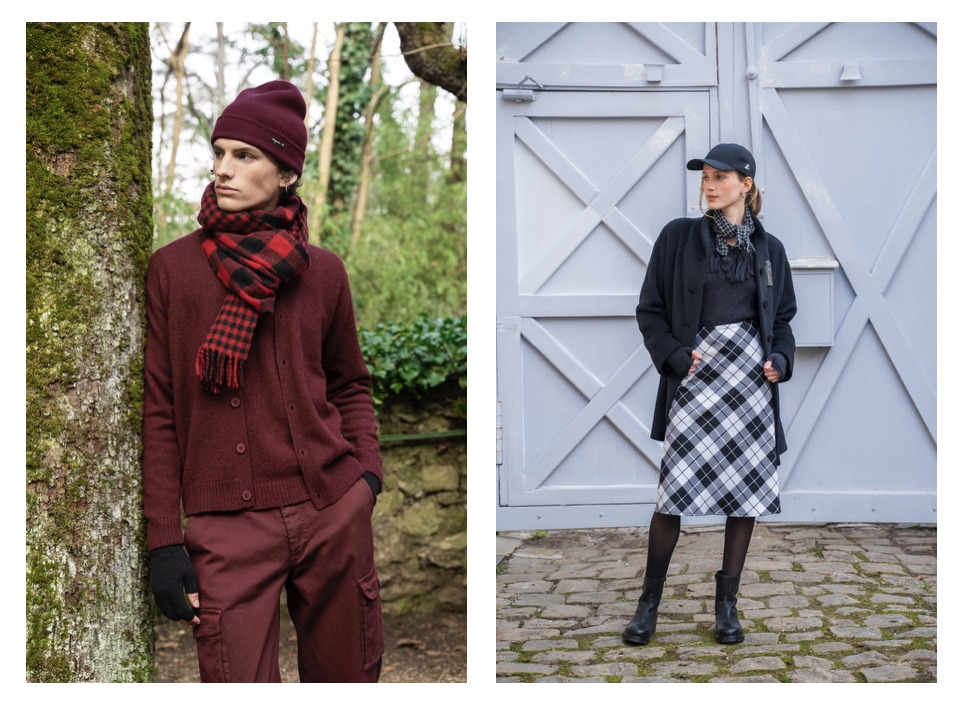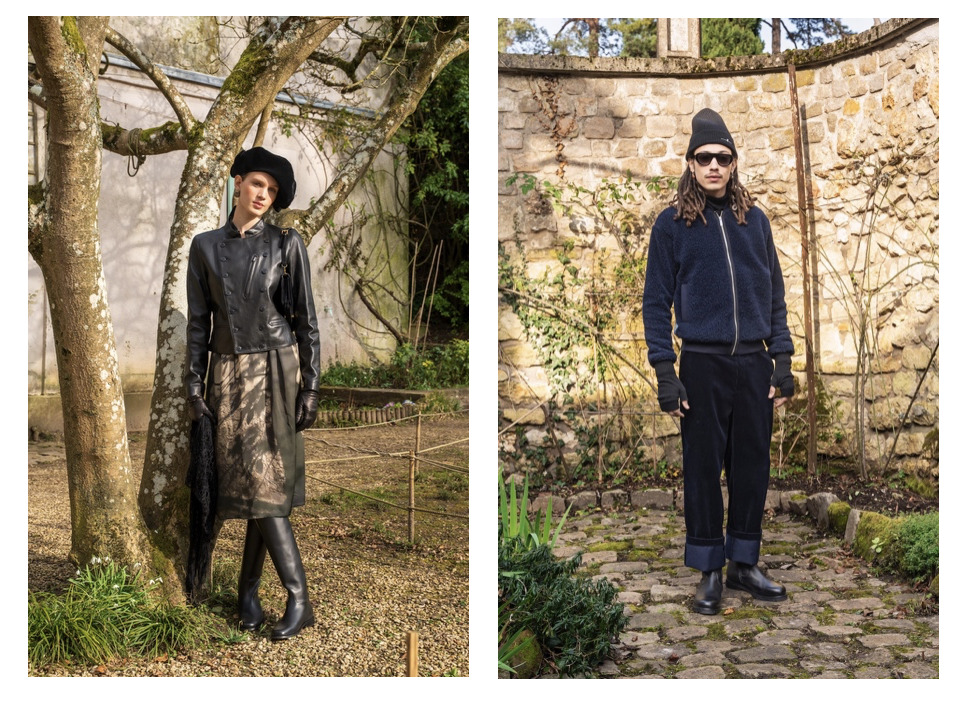 一系列灰藍色調女裝服飾以巴黎城市景觀為靈感。設計師從她位於總部頂樓的工作室往外望時,眼前所見是一整片錯落的灰色調鋅板屋頂,隨著光線和雨水浸透變幻色彩;秋冬時,天空為霧氣輕覆的藍灰色,描繪著這座城市特有的靜謐詩意。從針織裙裝到休閒衛衣,賦予低調而雋永的優雅氣質。男裝系列取材自秋日陽光灑落自然景物時的色彩變化,以鐵灰色與層次豐富的棕褐色為主調。羊絨、毛呢與燈芯絨等溫潤材質,在視覺與觸感上帶來暖意,呈現出溫柔且堅定的巴黎紳士風範。