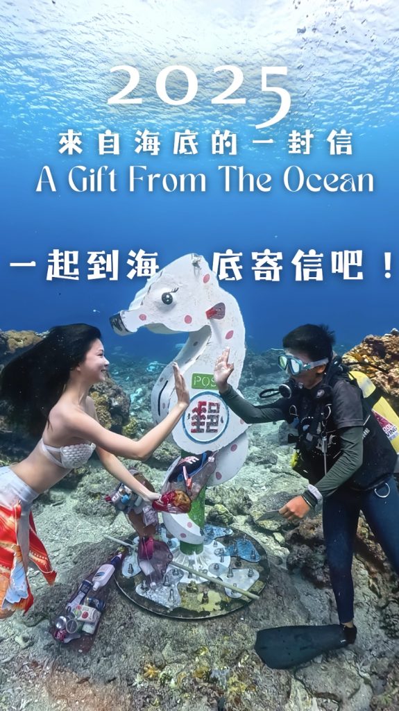 活動的最大亮點,是鄭婷怡親自潛入海中,化身「人魚」,將參加者的願望化作一張張防水明信片,投遞到綠島著名的海底郵筒。這些明信片不僅能抵達世界各地,更承載著參與者對海洋的回饋。