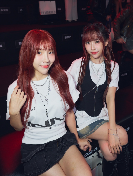 魏詩娗(蘿拉) 與蔣佳沂(講薑) 兩人也穿著INMORIES的服裝,大膽融合賽車元素,服裝不僅以流線型剪裁、金屬光澤材質展現速度美學,透過充滿賽道感的舞台設計,把伸展台打造成猶如國際賽車場的沉浸式體驗。