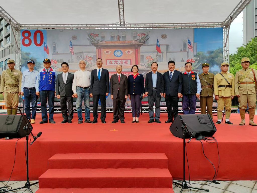 為慶祝台灣光復節,中華民族抗日戰爭紀念協會、中華民國中央軍事院校校友總會、國民黨,於臺北市中山堂廣場舉行舉辦「台灣光復80周年慶祝大會」現場湧入上千位民眾參加,除大會慶祝表演外,現場還設有「抗戰勝利暨台灣光復彩色照片展」及發放限量慶祝台灣光復紀念啤酒。