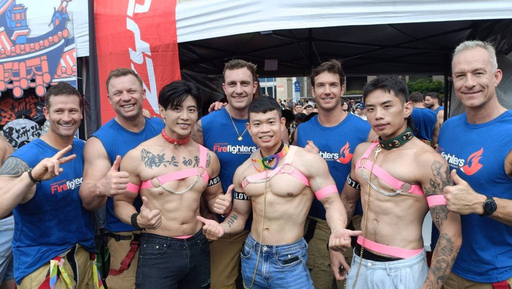 《Man’s King》性感現身台北同志大遊行與澳洲消防隊猛男合影。(圖/Man’s King 提供)