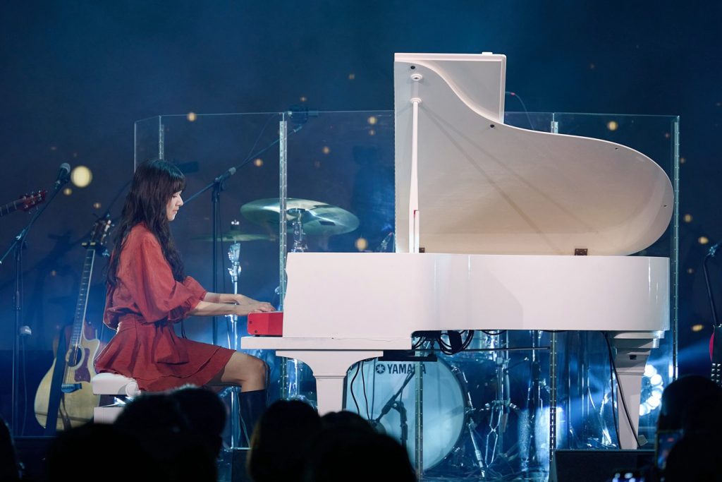 緊接帶來的〈風的記憶〉帶來細膩氛圍,她介紹:「記憶是一個很奇妙的東西,有時候它會出現、有時又突然消失,就像風一樣帶來記憶。」詩意talking讓全場靜靜傾聽,沉浸在她柔軟的聲音裡。