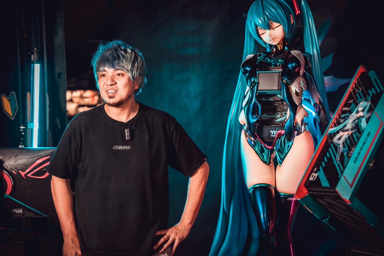 台灣手作第一 YouTuber 黃小潔打造全球首台 1:1 初音電競主機。(圖/黃小潔提供)