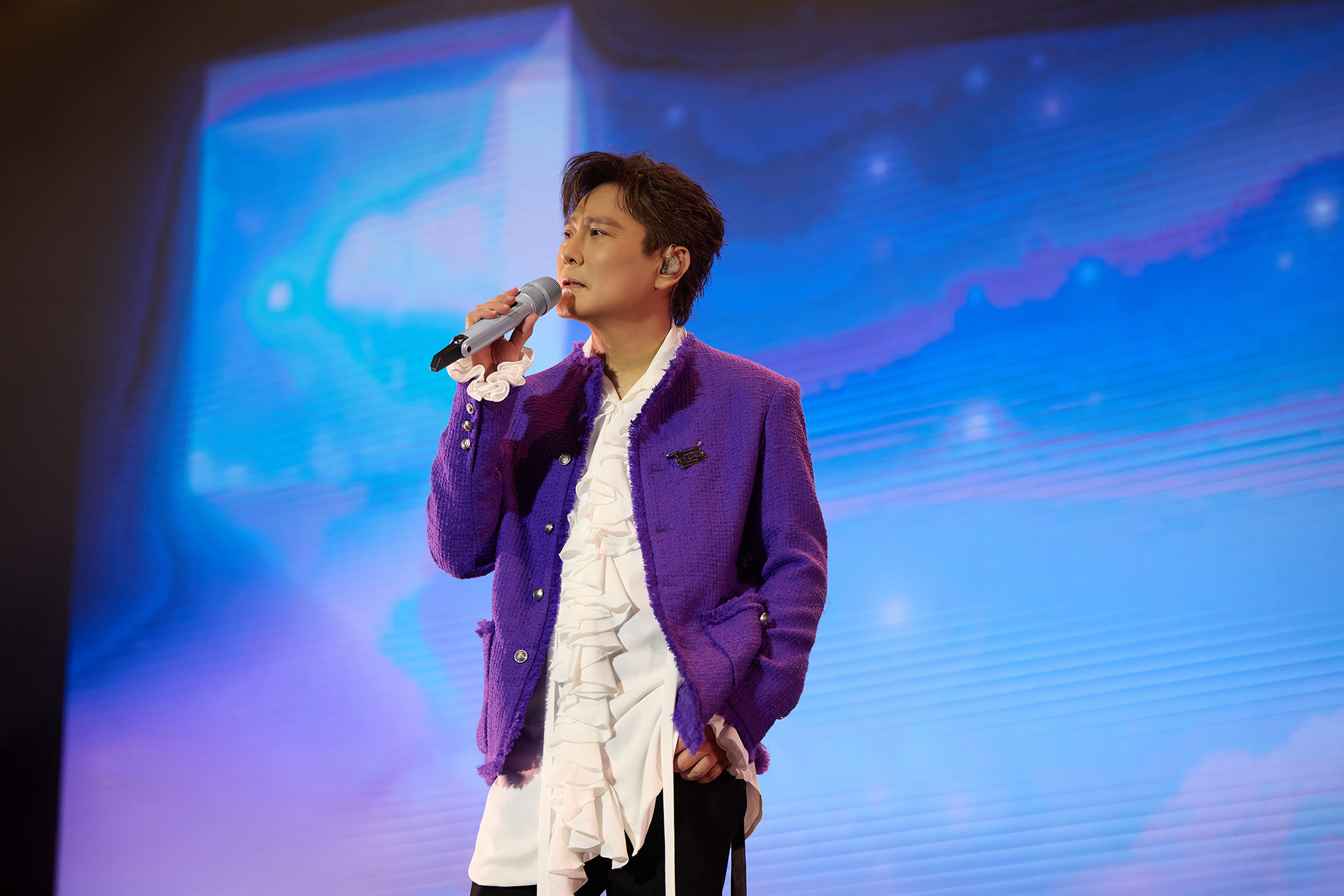 緊接的「巴黎限定」驚喜再度引爆歡呼。演唱〈找鑰匙〉時,他換上全新造型:紫色毛料西裝外套配白色長版蕾絲緞花襯衫,滿滿法式浪漫氣息,舞台燈一照彷彿伸展台走秀。歌曲尾聲,他突丟下一句:「巴黎,今夜不鎖門嗎?」全場尖叫值直接衝上最高點。