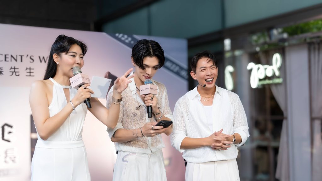 創作歌手 KIRE 凱爾 上週末驚喜現身京站時尚廣場,擔任文森先生一日店長,吸引大批粉絲到場支持。凱爾以演唱開場,並在活動中不斷加碼小驚喜,不僅為粉絲親自試色、產品示範,甚至逐一合照,展現他一貫溫暖又寵粉的個性。
