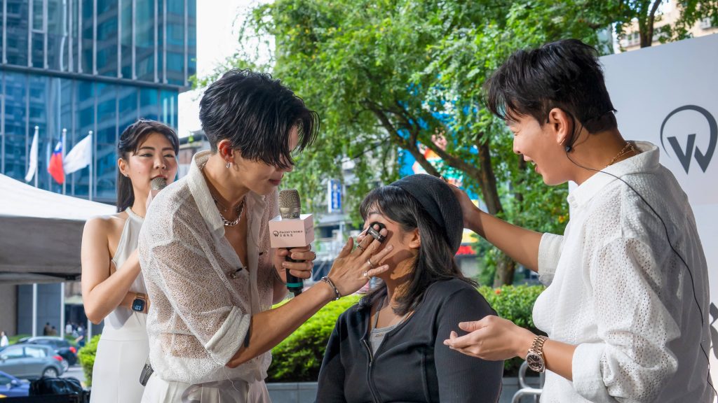 凱爾與創辦人現場示範防曬魔鏡霜的防水度,將產品放入水中依然維持完整不溶散,展現優異的防水與耐汗力,引發粉絲驚呼,並紛紛表示相當適合台灣潮濕容易下雨的氣候。凱爾亦在粉絲手背試用,只需輕拍即可呈現自然透亮的「媽生好氣色」,自然光澤在燈光下格外吸睛。