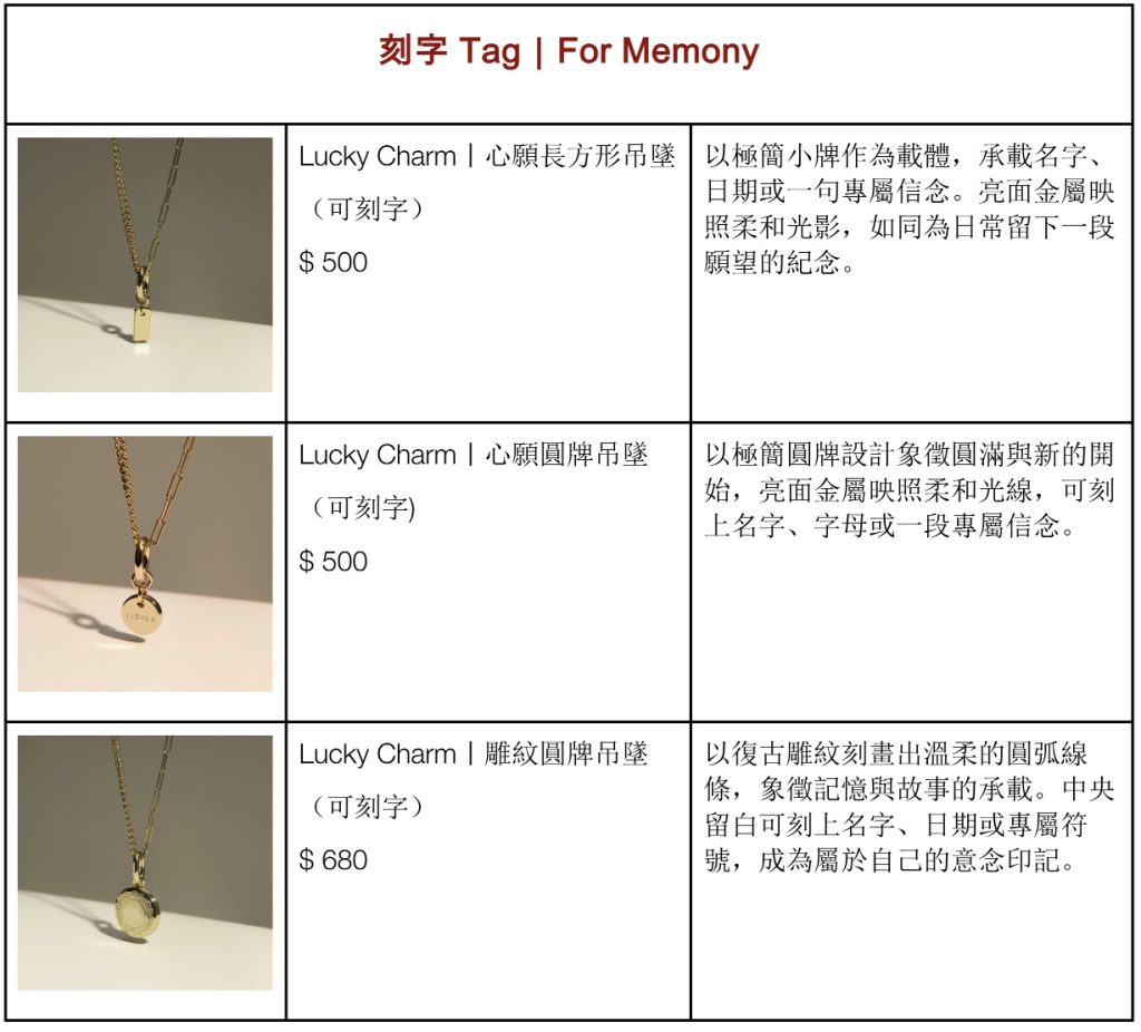 ● 刻字 Tag|For Memory:可客製刻字牌,把名字、銘言、紀念日真正寫進「信」裡