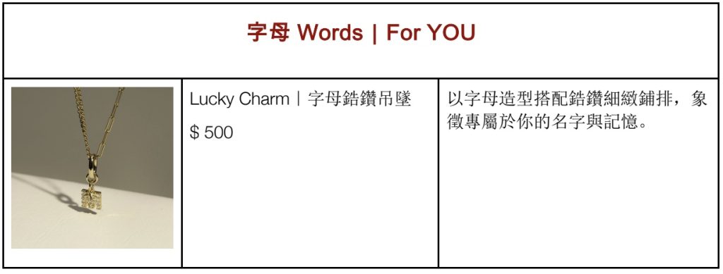 「寫信,是將話語落在紙上的方式;首飾,則以金屬塑形,將情感化為可觸的形狀。」在OLIVIA YAO JEWELLERY 的設計哲學中,挑選並串起吊墜的過程,彷彿在為心中的情緒、念想與願望尋找能對應的字句,將它們逐字落筆般地寫入一封屬於自己的信。當這些象徵性的暗號最終凝結成一件金屬首飾,也意味著這封 Love Letter 已完成書寫—得以被長久保存、貼身陪伴,在節日時分以最溫柔的方式呈現心意的形狀。