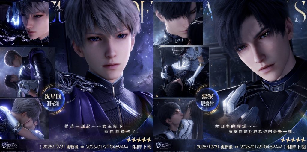 - 《戀與深空》雙平台免費下載:https://lovedeepspace-tw.onelink.me/lRfc/qj9yvw02