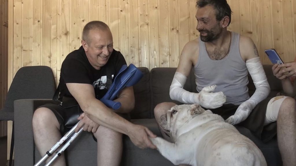 紀錄片【戰火下的毛孩】由長期關注動物權益的日本導演山田茜執導,2022年,她在俄烏戰爭爆發不久,便深入烏克蘭戰區,在當地動保人士的陪同下,一步步透過狗狗純真的視角,反映出戰爭下的人性、苦難與希望,並揭示出人們跨越疆界,共同追求和平的普世價值。關於人與狗的羈絆,導演山田茜指出,據說人類大約在一萬多年前就開始與狗狗生活在一起,建立起跨越物種的強大連結,「我認為在艱困的時期,小貓小狗們的陪伴與支持,能帶給人類相當大的救贖感,在當前的戰爭中也是如此。」【戰火下的毛孩】片中也訪問了一名英國退伍軍人湯姆,他正是在戰場罹患創傷後壓力症候群(PTSD),之後靠著治療犬治療,慢慢重獲新生的最佳案例。恢復健康的他,為了回饋曾在最痛苦時期拉他一把的毛孩們,積極投入全球各地戰場動物救援行動,同時也安排戰場上的士兵們與治療犬進行互動,讓他們在動物的陪伴下修復身心。