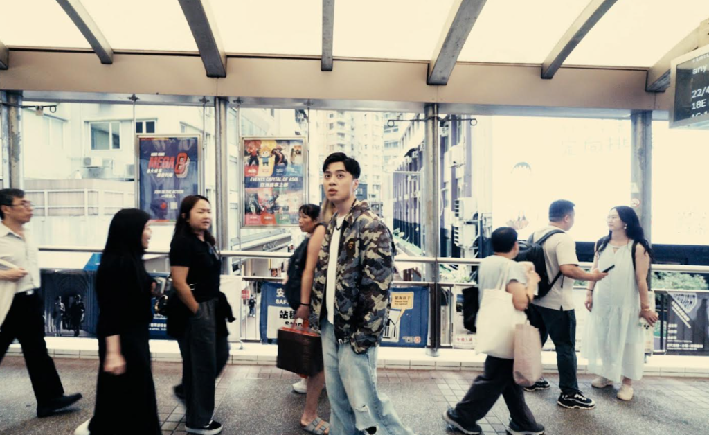 MV拍攝回到他最熟悉的香港中上環,與兩位00後導演合作,透過模仿與解構社群常見「吸睛畫面」,打造虛實交錯的影像語言。畫面中可見定格於人流天橋的孤立身影、「影分身」並存、甚至「自己踢飛自己」的荒誕設計,象徵現代人在虛擬世界中的分裂與抽離。